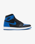 The Jordan 1 Retro Royal (2017) is one of the original Air Jordan 1 colorways that debuted in 1985. It features a black and blue leather upper, with the deep black tones acting as the base of the silhouette and giving way to the vibrant blues of Varsity Royal on the overlays. From there, a black "Air Jordan" wings logo contrasts nicely with the Varsity Royal on the collar, and a matching blue Nike "Swoosh" on the side completes the design.