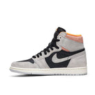 Ditching the silhouette’s standard all-leather construction, the Air Jordan 1 Retro High OG ‘Neutral Grey’ features a mixed-material build. A tumbled black leather base is contrasted by soft grey suede overlays and a contrasting pop of Hyper Crimson on the suede collar. ‘SP 19 Air Jordan 1 High OG’ is stamped in white print on the quarter panel.