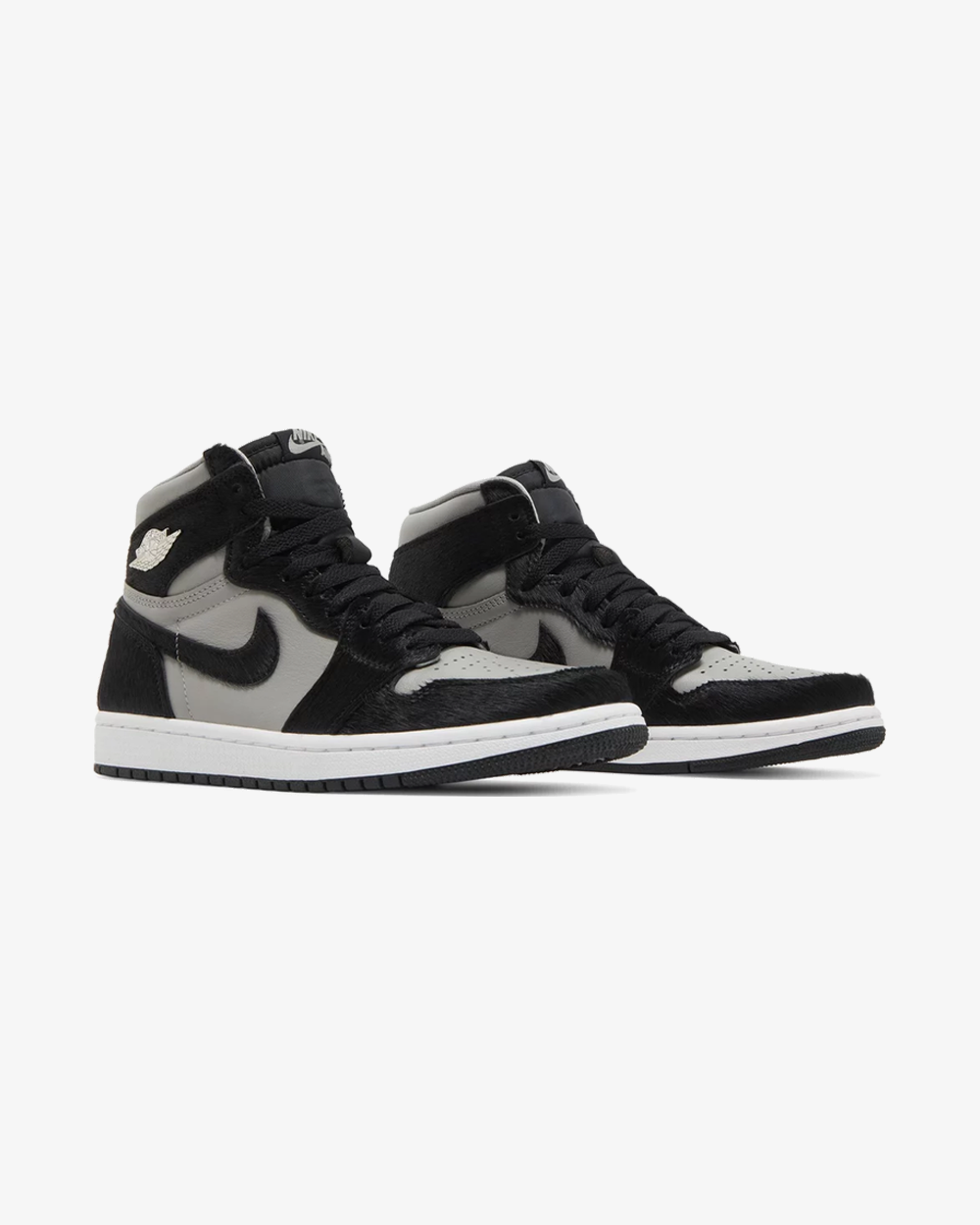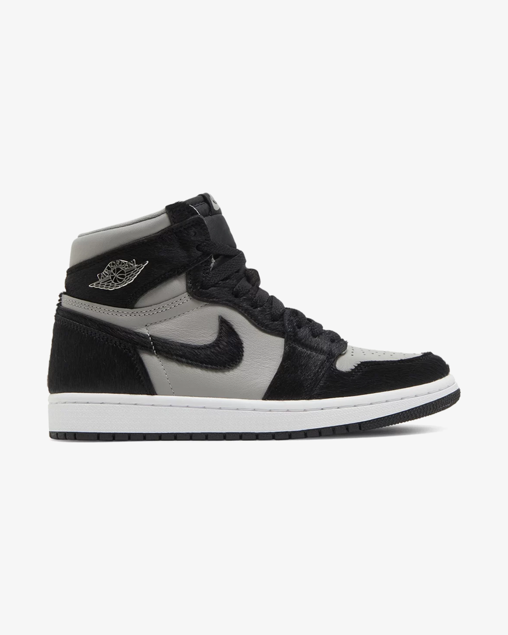 The women’s Air Jordan 1 Retro High OG ‘Twist 2.0’ presents the sequel to the AJ1 ‘Twist’ from 2019, featuring the same unique build but with a subtly refreshed palette. Like the older shoe, the upper pairs black pony hair with a smooth leather underlay. The latter is updated in a light grey hue, replacing the crisp white finish of the original. A molded Wings logo in metallic silver shines on the lateral collar, adding a bit of polish to the neutral design.