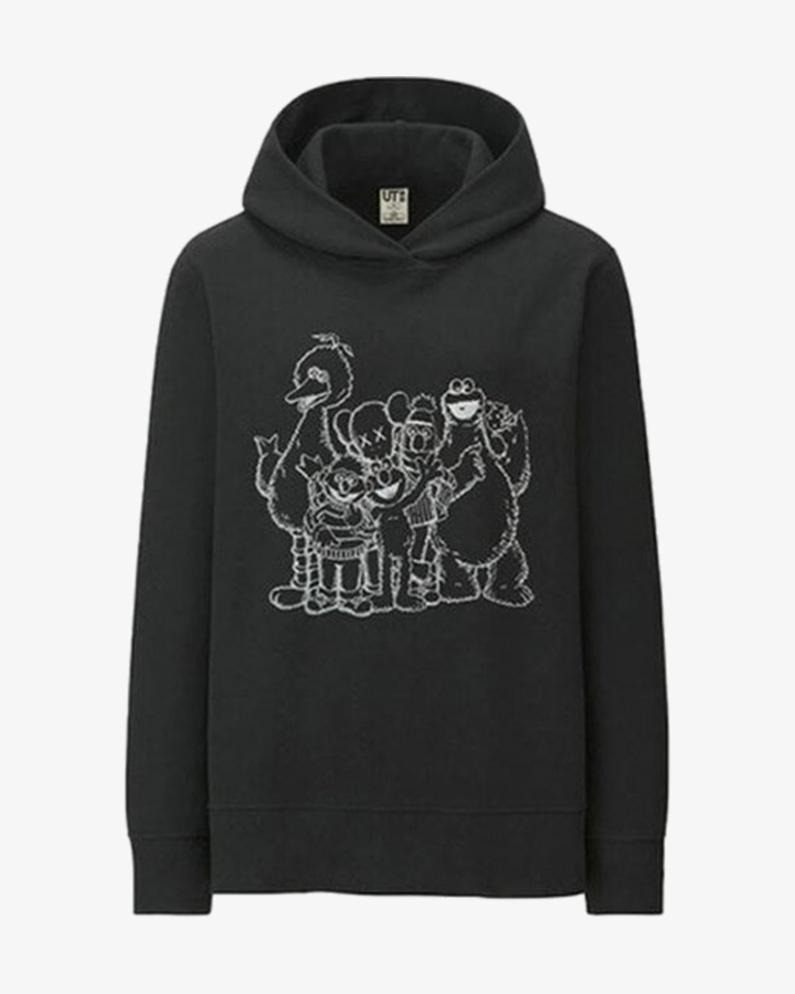 KAWS X UNIQLO X SESAME STREET GROUP OUTLINE BLACK HOODIE (ASIA SIZING)