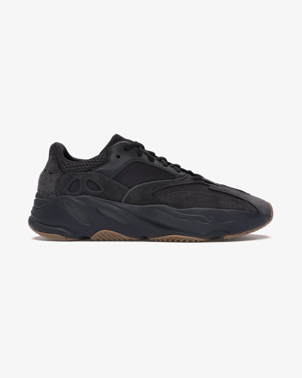 The adidas Yeezy Boost 700 Utility Black features a muted Utility Black mesh, leather, and suede monochrome upper. From there, a Utility Black Boost midsole and gum outsole completes the design.