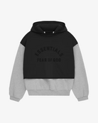 FOG ESSENTIALS FW24 LAYERED NYLON FLEECE HOODIE JET BLACK / LIGHT HEATHER