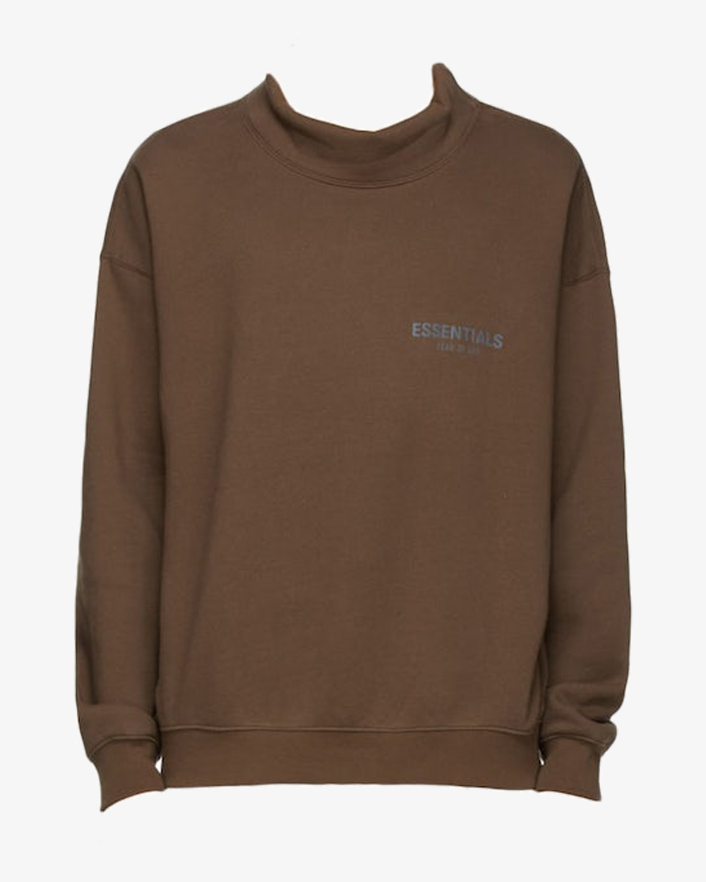 FOG ESSENTIALS SS20 LOGO BROWN RAIN DRUM MOCKNECK CREWNECK