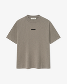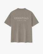 The Classic Tee is made from medium-weight 100% cotton jersey. The rib-knit crewneck tee features a classic fit with signature Fear of God relaxed proportions for everyday wear. Branding includes a "Fear of God Essentials" translucent rubberized label at the center front and a new "Essentials Fear of God" beveled metallic logo across the back.