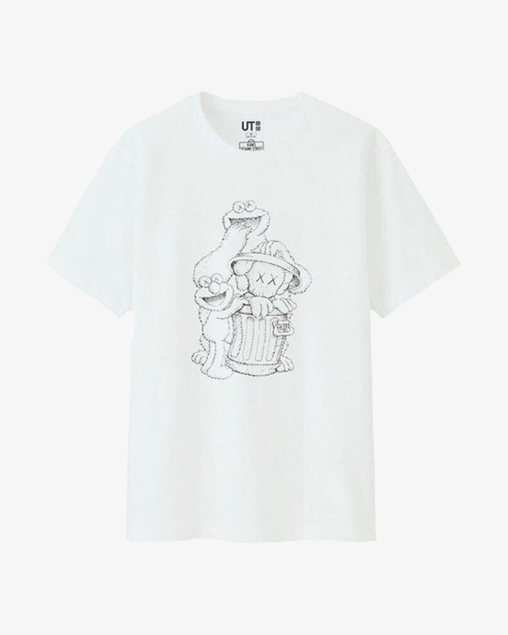 KAWS X UNIQLO X SESAME STREET COMPANION TRASH CAN OUTLINE WHITE TEE (ASIA SIZING)