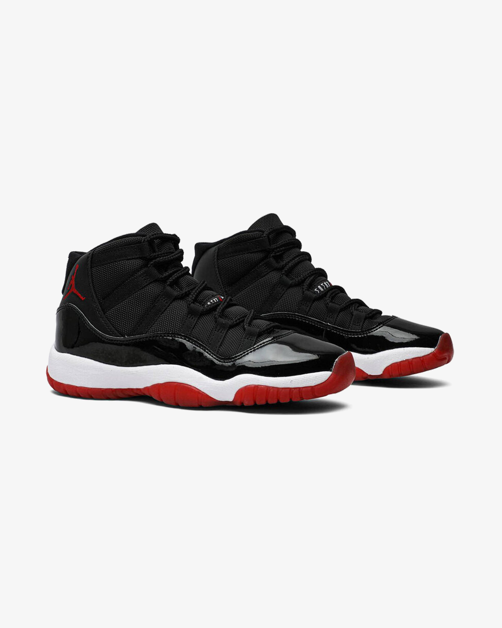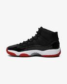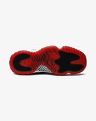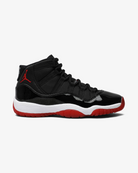 Revived in December 2019, the Nike Air Jordan 11 Retro GS 'Bred' harks back to the iconic colorway originating in 1996. This kid's edition elevates the classic in black mesh paired with a distinctive patent leather mudguard and webbing eyestays. A Jumpman in Varsity Red is embroidered on the counter. Reinforced by a carbon fiber midfoot shank, the Air-encased midsole and translucent rubber outsole deliver a comfortable, stable ride.