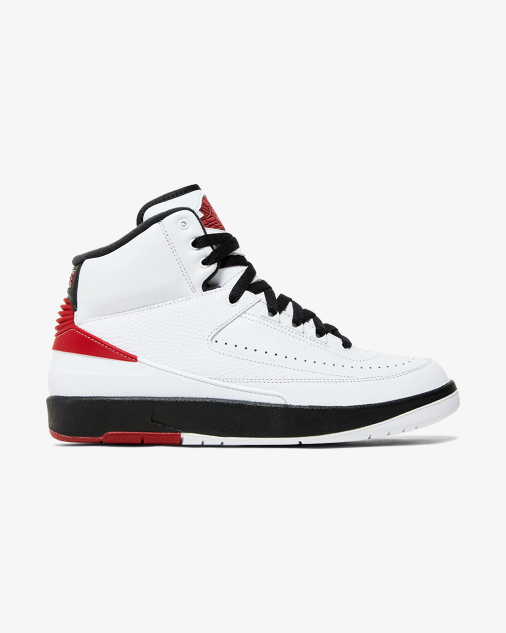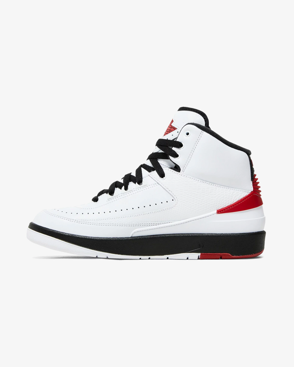 2022 was unofficially dubbed the Year of the Jordan 2, as Jordan Brand brought back the classic Air Jordan 2 Chicago in its true OG form. The Air Jordan 2 Chicago reps the same historic colorway worn by Michael Jordan during his 1986-1987 season with the Bulls. The sneaker features white reptile-embossed leather uppers, Varsity Red reptile spine design on the heel, and Varsity Red signature Wings logo on the tongue. A black midsole and "NIKE" debossed branding on the heel tab ties up this signature silhouette.