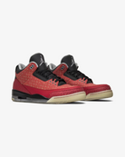 Released in July 2013, this special edition Air Jordan 3 Retro 'Doernbecher' was designed by Cole Johanson, an 11-year-old cancer patient at Doernbecher Hospital. The shoe features a Varsity Red diamond patterned upper with black accents and red elephant print overlays at the toe and heel. It also comes with the words “COURAGE” and “STR3NGTH” on the insole, a black and metallic silver midsole, and an icy blue translucent outsole.