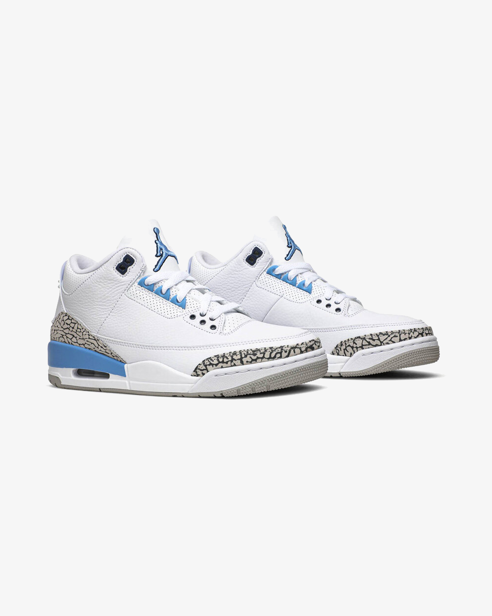 The Air Jordan 3 Retro 'UNC' arrives in March 2020 as an homage to Michael Jordan's alma mater. The special edition presents university-inspired colors on its dual-textured leather upper and eyestays, with elephant print panels granting an iconic touch. Valor Blue hits both Jumpman logos on the tongue and heel while the visible Air unit in the midsole and rubber outsole wrap up the styling.