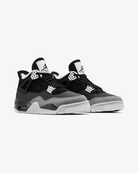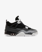 The 2024 edition of the Air Jordan 4 Retro 'Fear' brings back a neutral colorway of the classic silhouette. Originally released in 2013, the mid-top sports a smooth nubuck upper, featuring a mudguard and toe wrap in two shades of grey. Molded eyelets are rendered in white, matching the Jumpman branding hits that decorate the woven tongue tag and back heel. White speckled detailing covers a black polyurethane midsole with visible Air-sole cushioning in the heel.