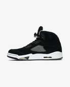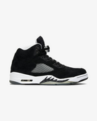 The Air Jordan 5 Retro ‘Oreo’ features a black nubuck upper and white midsole with speckled oreo shark teeth. Released in November of 2013 to celebrate the silhouette’s 23rd anniversary, the design also includes an anthracite tongue, a ‘23’ embroidered on the lateral side of the upper near the heel, and an ice blue translucent outsole.