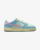 Made for little kids, the Verdy x Nike Dunk Low SB PS 'Visty' is inspired by Verdy's unique monster character Visty, and features a furry upper in a pastel green hue. Etched with debossed lines, aqua blue suede covers the forefoot and heel overlay. Pink accents settle on the leather Swoosh and furry collar. A co-branded tag embellishes the tongue, with Visty's likeness appearing on the interior side.