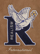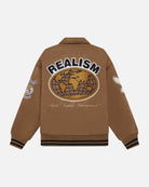 The Realism Worldwide Coaches Jacket takes on a new level of style. Featuring embroidered and chenille appliqués, full snap button up and contrasting trims. The jacket has a full suede construction for that ultra lux finish.