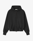 The Classic Fleece Full Zip Hoodie is crafted from 520gsm heavy fleece and treated with a pigment dye to create rich depth of color. Its classic silhouette is defined by an embroidered Fear of God Essentials logo on the back. Details include side pockets, rib-knit cuffs, and waist-hem. A Fear of God Essentials rubberized label stitched at the back collar.