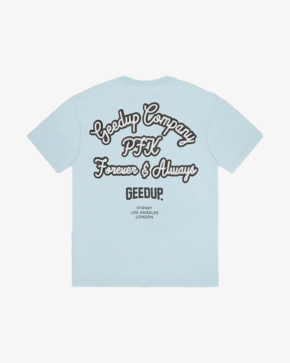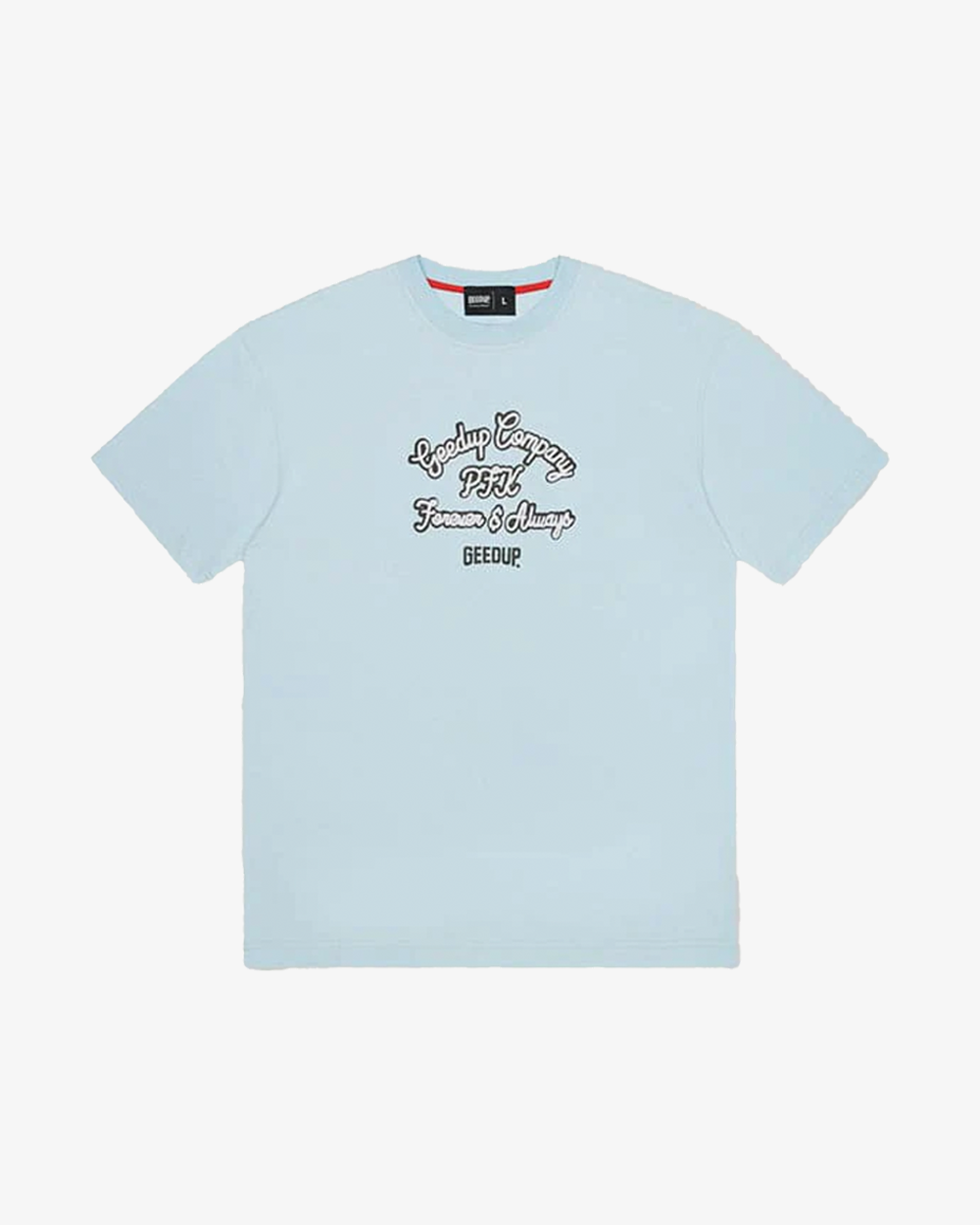 The Geedup Company T-Shirt in the 'Light Blue' colorway is a statement of contemporary street culture. This shirt is not just an article of clothing; it's a reflection of a lifestyle and an attitude. Crafted with meticulous attention to detail, this tee boasts high-quality materials that provide not only style but also exceptional durability. The striking combination of black and red adds a bold and trendy aesthetic, perfect for expressing your unique personality and staying on the cutting edge of fashion.
