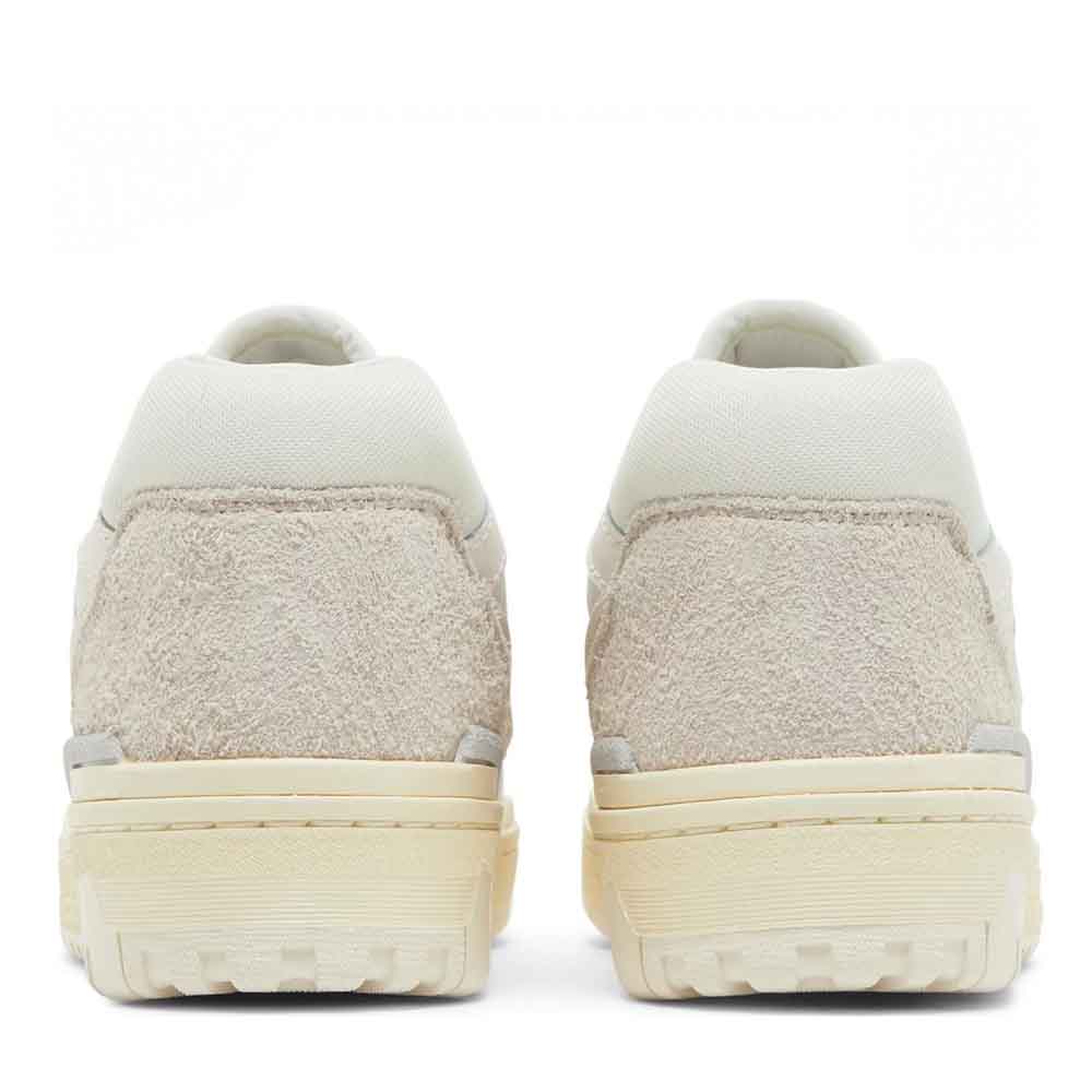 The Aimé Leon Dore x New Balance 550 ‘White’ delivers Teddy Santis’s blank-slate interpretation of the retro silhouette. A subdued off-white finish permeates the upper, featuring suede paneling with a leather toe box and padded textile around the collar. Cracked leather appears on the signature ‘N’ logo, while an oversized woven tongue tag displays dual ALD and NB branding. The low-top is mounted on a cream-colored rubber cupsole, fitted with an EVA wedge for lightweight cushioning.