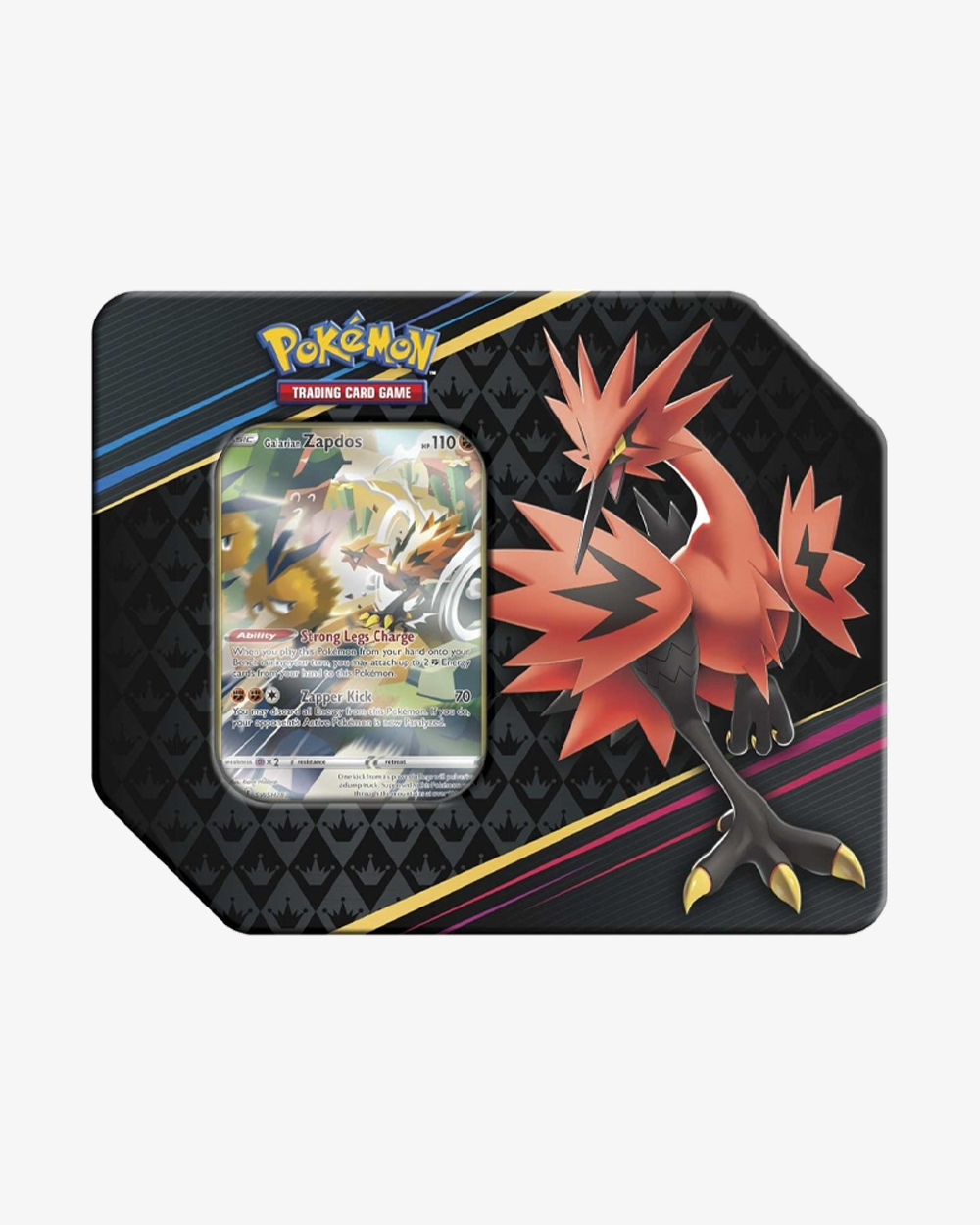 Each tin includes a foil promo card of Galarian Zapdos, showcasing its dynamic Fighting- and Flying-type form in bold, eye-catching artwork. Inside, you’ll find Crown Zenith booster packs packed with powerful Pokémon, stunning alternate art cards, and exciting pull potential from one of the most celebrated Sword & Shield era sets.