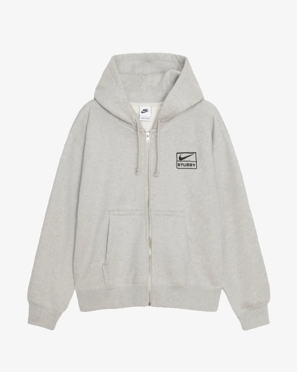 NIKE X STUSSY FW23 FULL ZIP GREY FLEECE HOODIE