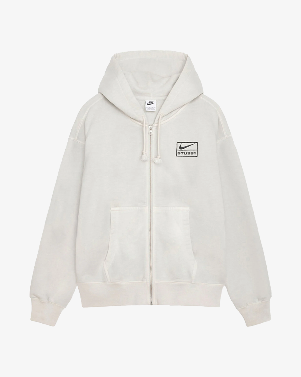 NIKE X STUSSY SS24 FULL ZIP PIGMENT DYED LIGHT BONE FLEECE HOODIE