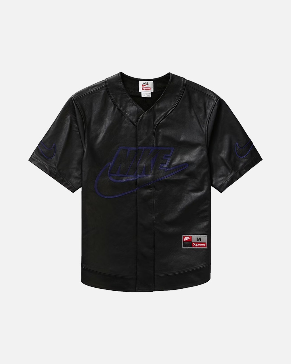 The Supreme FW19 Nike Leather Baseball Jersey “Black” is one of the most premium and standout pieces from the Fall/Winter 2019 Supreme x Nike collaboration, merging classic American sportswear with luxury-level materials.