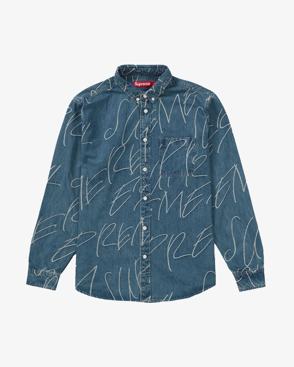 SUPREME FW23 HANDWRITING JACQUARD DENIM SHIRT WASHED INDIGO