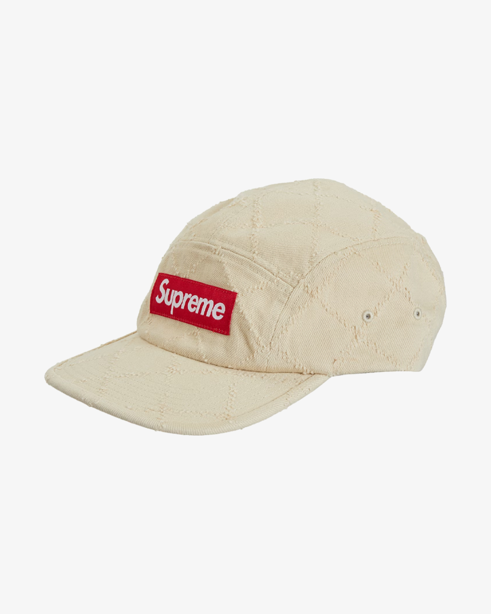 The Supreme FW23 Punched Denim Camp Cap in dyed beige puts a unique spin on the brand’s iconic 5-panel silhouette. Released in the Fall/Winter 2023 collection, this cap is constructed from premium denim and features an all-over punched perforation design for a textured, standout look.