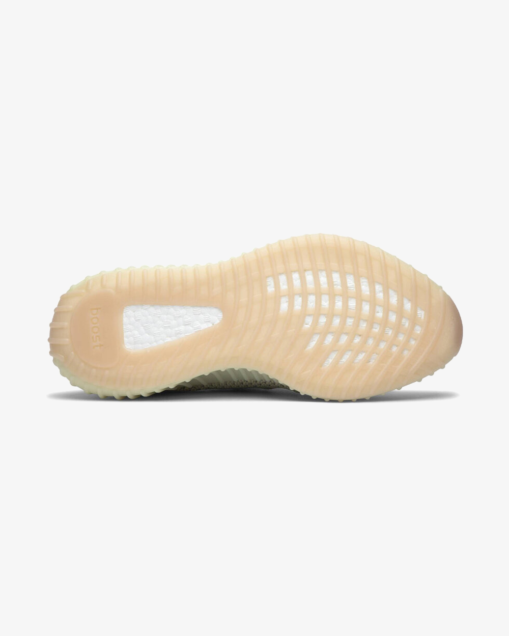 The Yeezy Boost 350 V2 sneaker was first revealed at the Yeezy Season 3 fashion show and released in September 2016. The 'Antlia Non-Reflective' model reprises the design, covering the shoe's Primeknit upper with a pale yellow-green hue. A translucent stripe lines the lateral side, which leads to the back where the traditional heel tab has been removed. This region-exclusive colorway released June 2019 alongside a similar 'Reflective' version. As is standard in all Boost 350 models, full-length adidas Boost cushioning is encapsulated in a wrapped TPU shell that extends from the midsole to the outsole.
