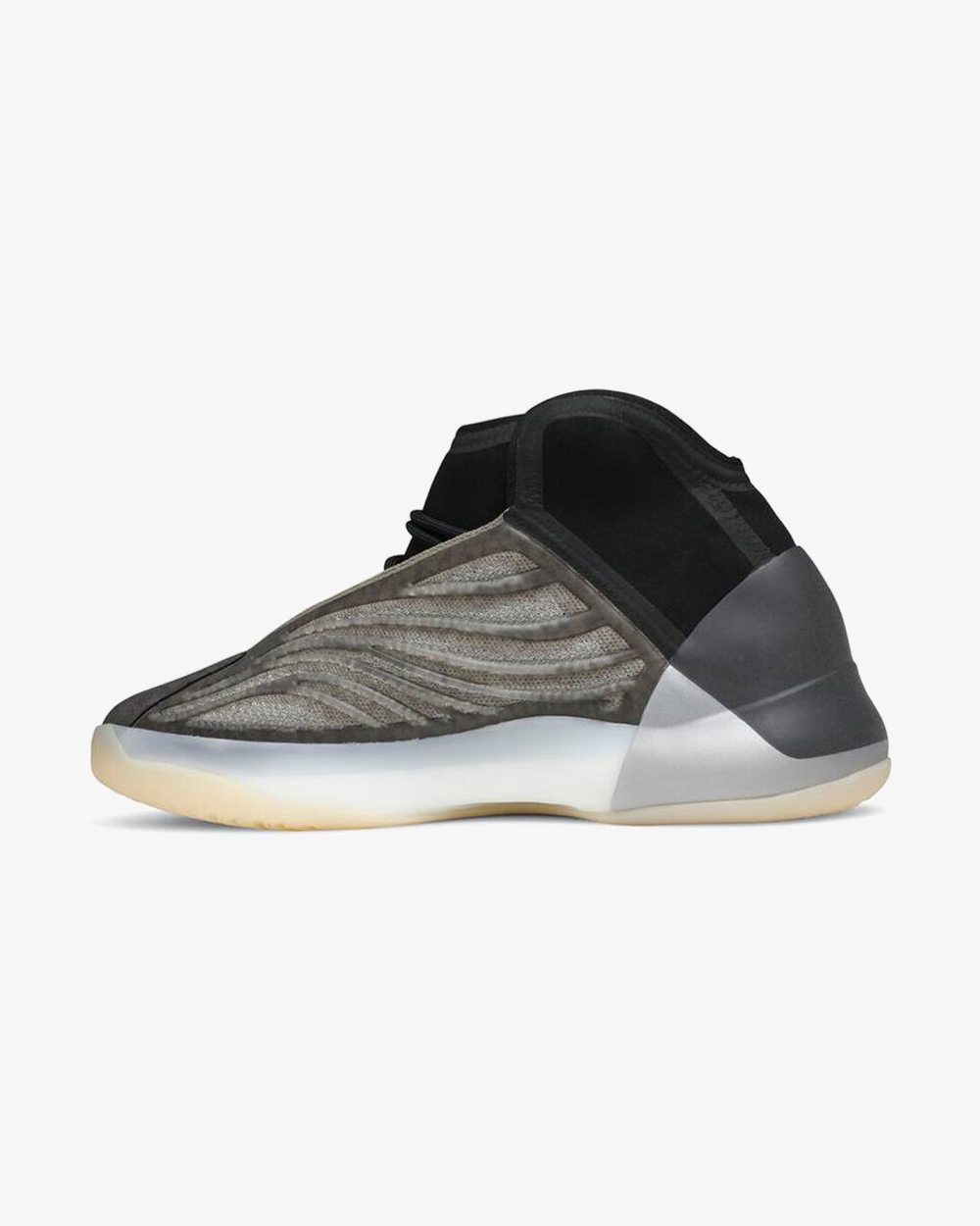The QNTM Barium is composed of a dark grey Primeknit upper with suede overlays and reflective detailing. A translucent sole, extended ankle collar, and reinforced heel cap complete the design.