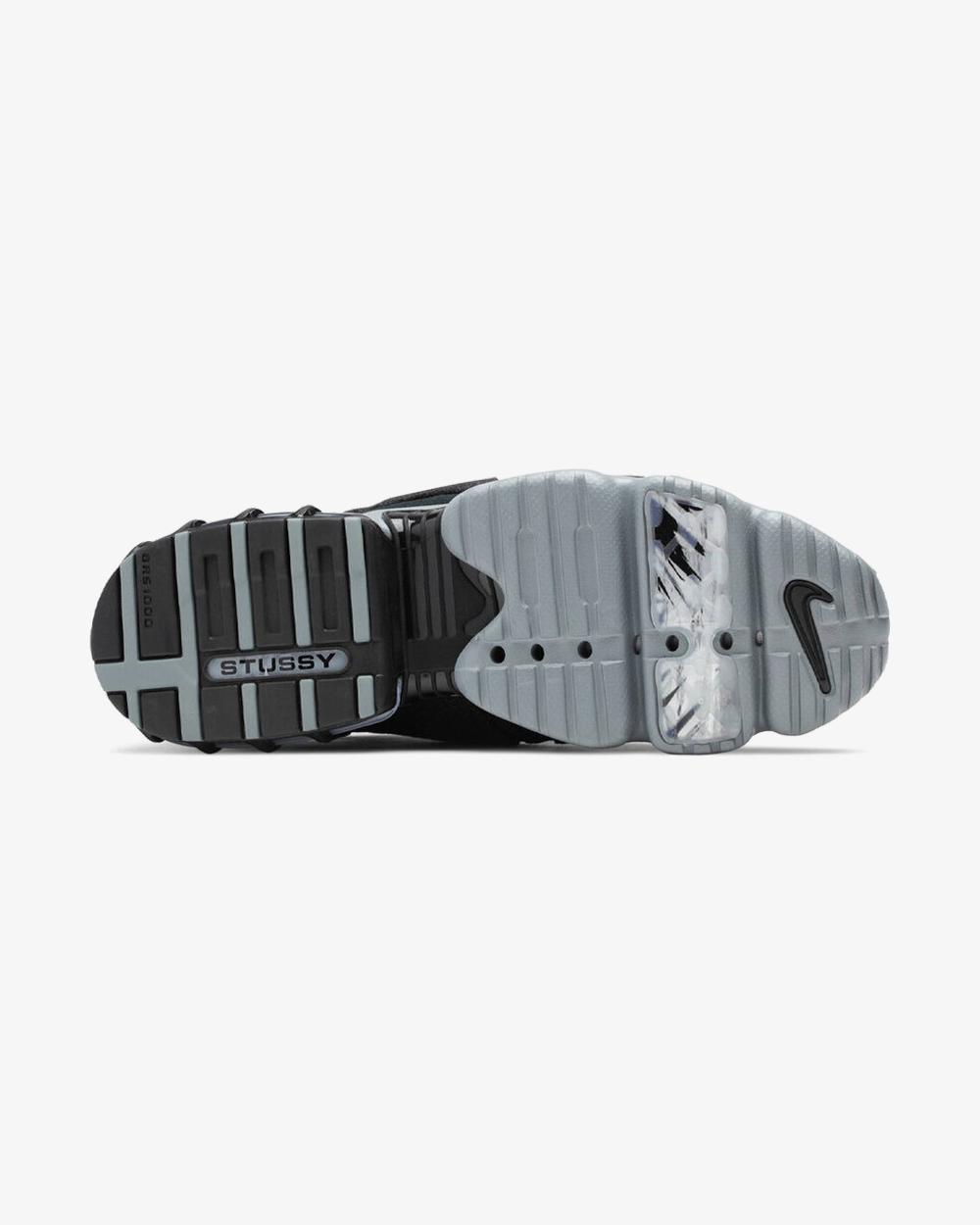 Made in collaboration with the pioneering streetwear brand, the Stussy x Air Zoom Spiridon Kukini ‘Black’ introduces a hybrid silhouette that draws inspiration from the Nike Air Kukini, highlighted by a web-like TPU overlay spread out over a black mesh upper. Nike branding adorns the tonal patent leather heel panel, while Stussy’s classic script logo is embroidered across the tongue. A Phylite midsole, fitted with a caged Zoom Air heel unit, anchors the slip-on build.