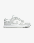 Lace up in an iconic look with these men's Dunk Low trainers from Nike. Back from the '80s, these retro-inspired kicks have a premium leather upper in a Grey Fog colour block style. They're inspired by the OG college colourways and feature breathable perforations and a secure lace up fastening. Sat on a lightweight midsole to keep feet cushioned, they have a grippy rubber tread for traction. Finished with signature Nike branding to the tongue and the iconic Swoosh logo to the sidewalls.