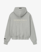 The Classic Zip-Up Hoodie is made from 380gsm core fleece to provide ideal comfort and structure. The zip-up hoodie style features a classic fit with signature Fear of God relaxed proportions. A new beveled metallic "Essentials Fear of God" logo is branded across the back. Details include a double-layer hoodie, rib-knit cuffs, waist-hem, and a kangaroo pocket. A Fear of God Essentials rubberized label is stitched on the hood and sleeve.