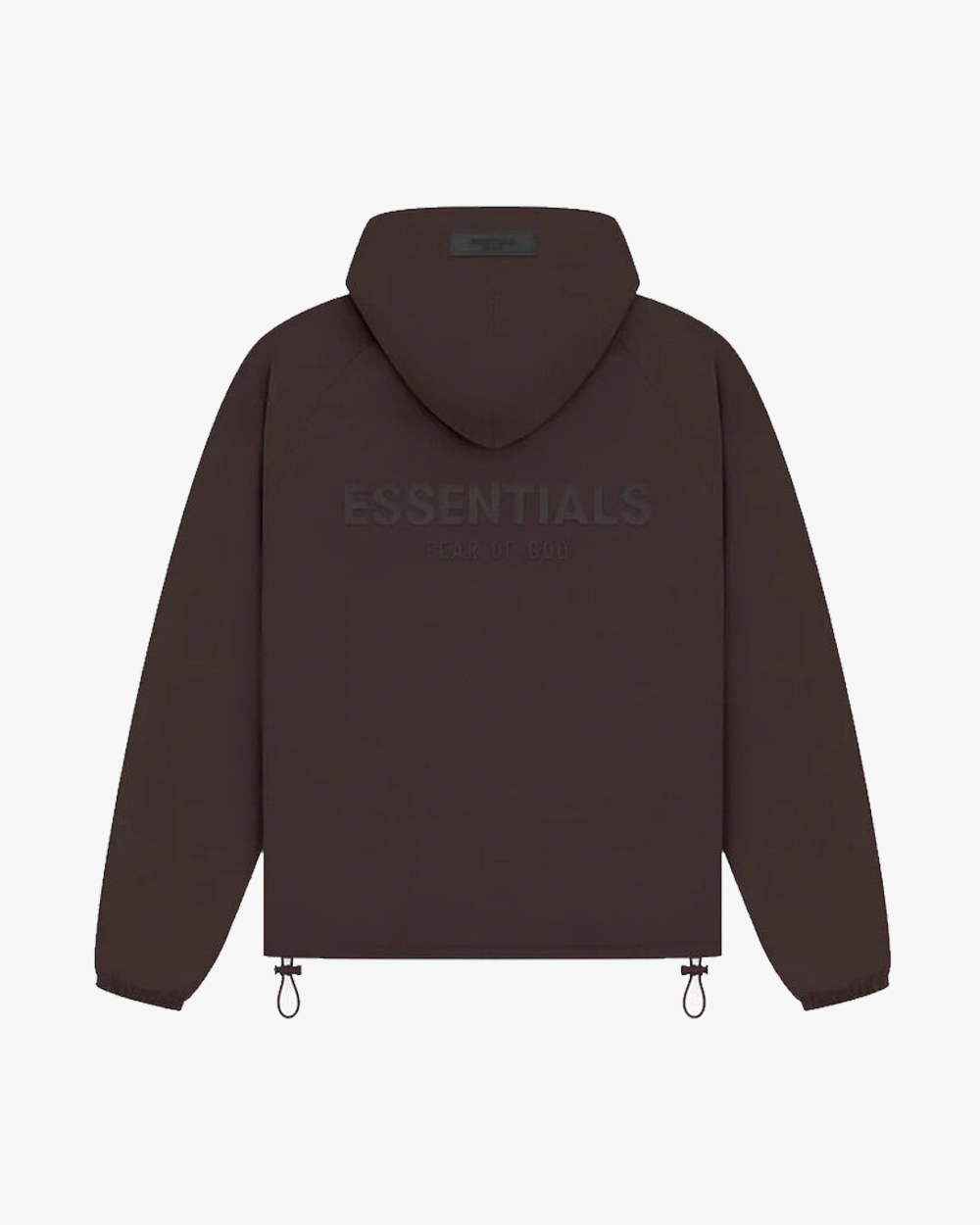 The kid's fullzip hoodie is made in a washed cotton woven with insulation to provide a structured American workwear feel. The piece is detailed with a modern rubberized Essentials Fear of God logo across the back. Side seam pockets, elasticated cuffs, and waist hem with adjustable bungee cords frame the piece. An Essentials rubberized label is stitched on the double-layered hood.