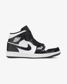 Celebrating the NBA’s midseason break, the Air Jordan 1 Mid SE ‘All Star 2021' treats the classic silhouette to an essential two-tone color scheme with unique details. The upper combines a white leather base with contrasting black patent leather overlays at the forefoot and eyestay. The same glossy black leather is utilized on the Swoosh, collar flap and heel, though these pieces are enhanced with a faux carbon fiber print. A woven tag atop the tongue displays an encircled Jumpman logo.