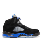 The Air Jordan 5 Retro ‘Racer Blue’ adds color-popped accents to a stealthy colorway of the venerable 1990 silhouette, designed by Tinker Hatfield and introduced to the world by Mars Blackmon. The mid-top makes use of a black nubuck upper with tonal TPU eyelets, translucent quarter panel netting and a reflective silver tongue. The latter features contrasting hits of royal blue on the embroidered Jumpman and interior lining. Lightweight cushioning arrives via a blue polyurethane midsole, embellished with black shark tooth detailing and fitted with visible Air-sole cushioning in the heel. A translucent rubber outsole provides grippy traction underfoot.