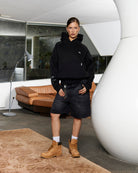 The classic hoodie is refreshed our deluxe touch. Made with our signature comfy fleece in a oversized Black guise, this hoodie features metal accents including custom "R" branded zips, chest emblem and tag. An embroidered "R" on the hood, silicon applique logo on the back and sleeve print ties together a design that captures the essence of premium loungewear.