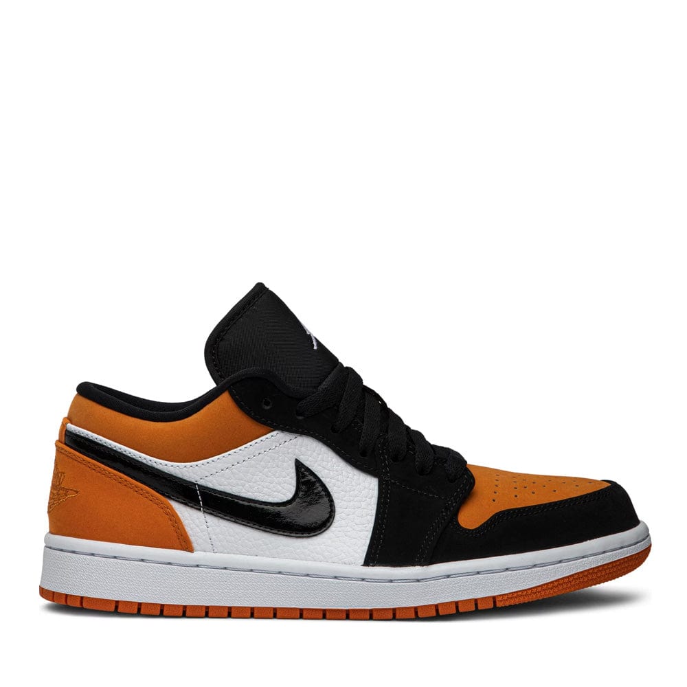 The Air Jordan 1 Low 'Shattered Backboard' commemorates when Michael Jordan broke a backboard during a 1985 exhibition game in Italy. Inspired by the OG AJ1, this low-cut version is presented in Starfish, black and Sail, a nod to the jersey worn by MJ during the game. The shoe comes with a leather upper, the iconic Jumpman logo on the tongue and the classic Wings logo embroidered on the heel. An encapsulated Air-Sole unit and a rubber outsole with a pivot point tread pattern finish the model.