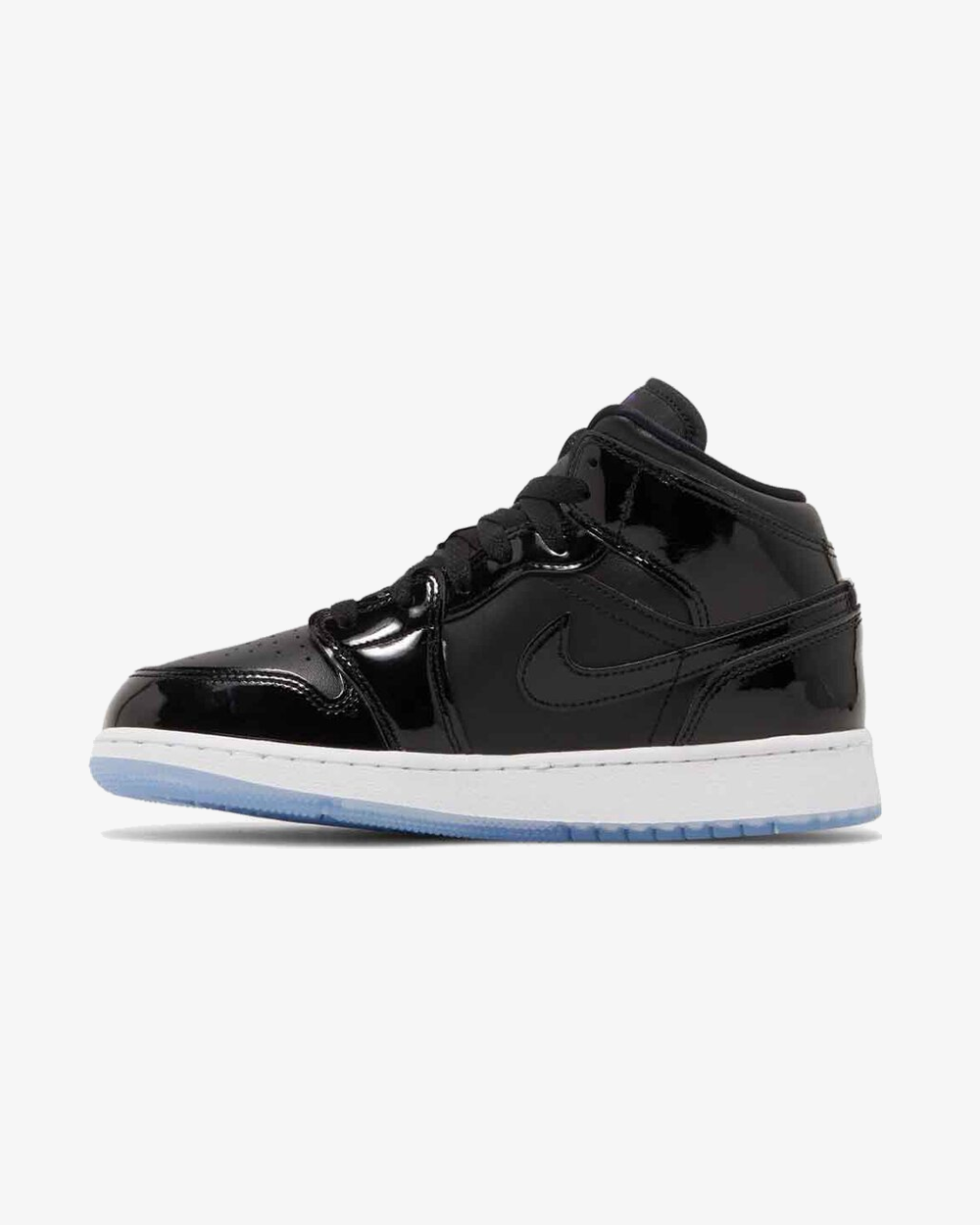 With its next offering, the Air Jordan 1 Mid is taking us all the way back to the mid-90s, celebrating one of the most famous colorways of the Tinker Hatfield-designed icon: the “Space Jam” 11. In the way of color blocking, this pair is near exact in its impression. Black patent meets smooth leather throughout the upper — both clad in a deep black much like its inspiration — while white midsoles and icy bottoms sit just underfoot. Branding, too, is reminiscent of the original, with a dark blue Jumpman applied to the mid-top’s tongue.