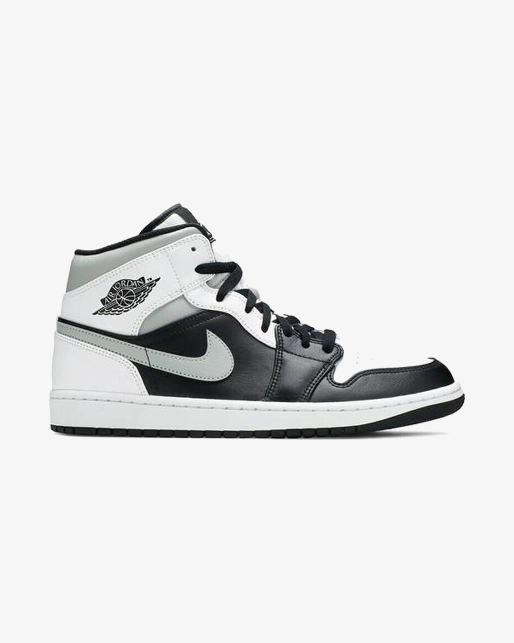 The Air Jordan 1 Mid White Shadow is a mid-top shoe that comes in a special colorway that tastefully mixes black, white and gray together. As a real blast from the past, it makes use of the original Air Jordan 1’s Shadow design. It features a black leather mid-panel, a cool grey leather Swoosh that is made to be ever-so-slightly lighter than the Swoosh on the original Jordan 1, and a stylish white collar and heel that also contribute to maximum comfort. A white leather perforated toe, a black leather toe cap, lower eyelets, and a white Jumpman on its white leather tongue completes the design.