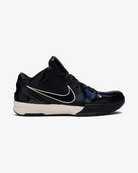 Unveiled in September 2019, the Undefeated x Nike Kobe 4 Protro 'Black Mamba' is an homage to Bryant's on-court alias symbolizing his aggressive game. The special edition is equipped with a black synthetic upper, molded external heel and an iridescent forefoot. Bryant's logo and the brand's five-strike emblem alternate on the tongues and insoles, with jersey numbers at the rear. A semi-translucent outsole sits under the sculpted midsole.