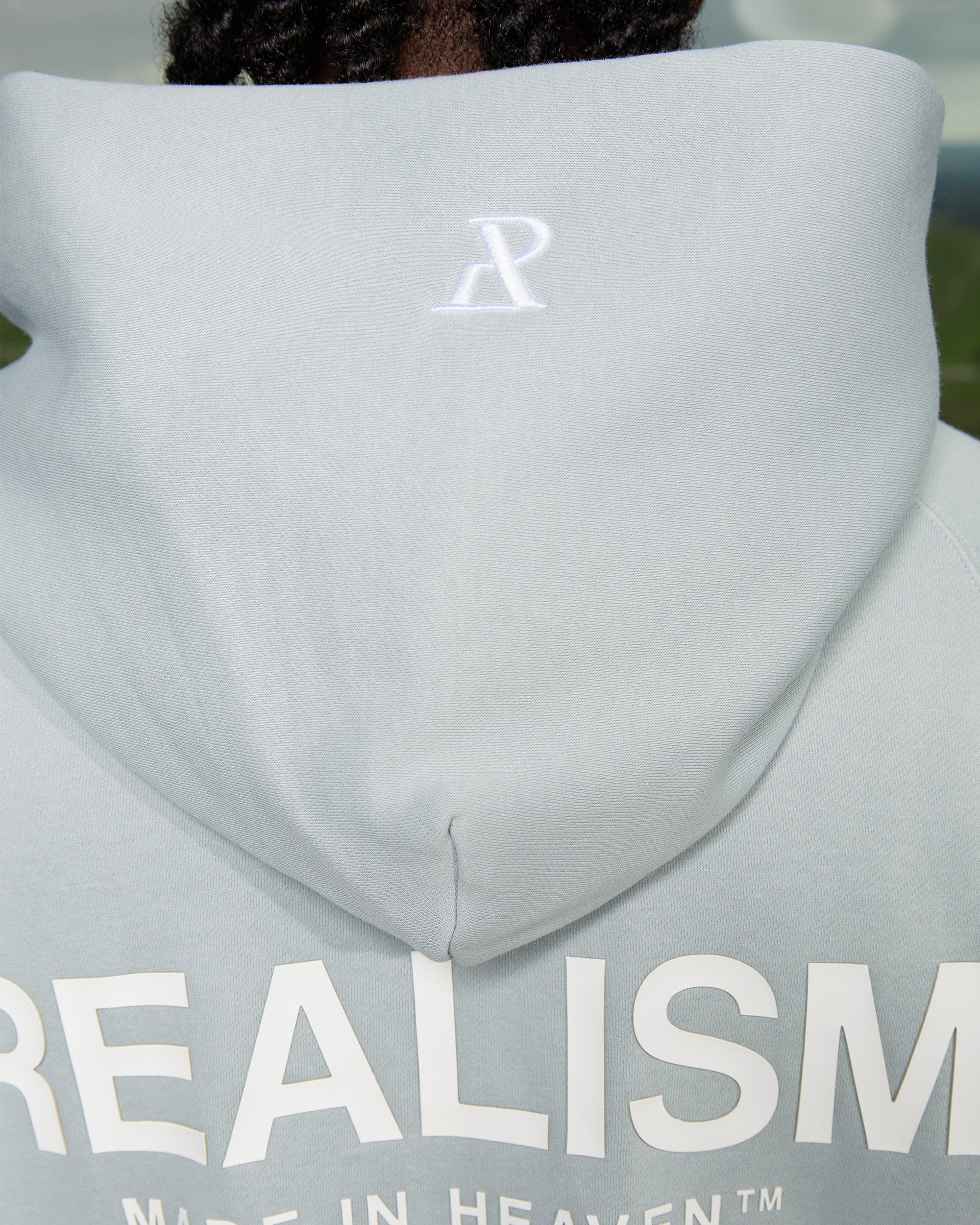 The ultimate hoodie. Premium, comfortable, and designed with purpose. Featuring Realism's signature 350gsm fleece crafted into a raglan, oversized silhouette, this hoodie is accentuated with 3-dimensional silicone applique logos on the front and back. An embroidered "R" logo on the hood and a "Made in Heaven" motif on the right sleeve complete this iconic design.