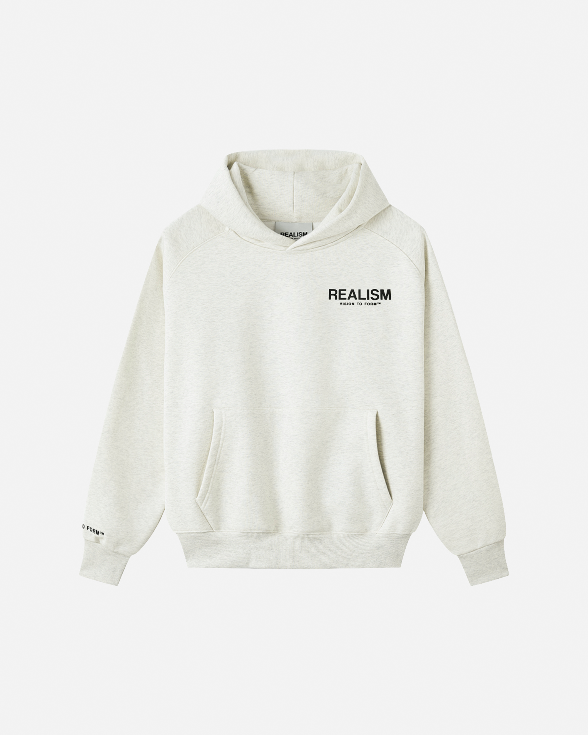 The ultimate hoodie. Premium, comfortable, and designed with purpose. Featuring Realism's signature 410 GSM fleece crafted into a raglan, oversized silhouette, this hoodie is accentuated with 3-dimensional silicone applique logos on the front and back. An embroidered "R" logo on the hood and a "Vison To Form" motif on the right sleeve complete this iconic design.
