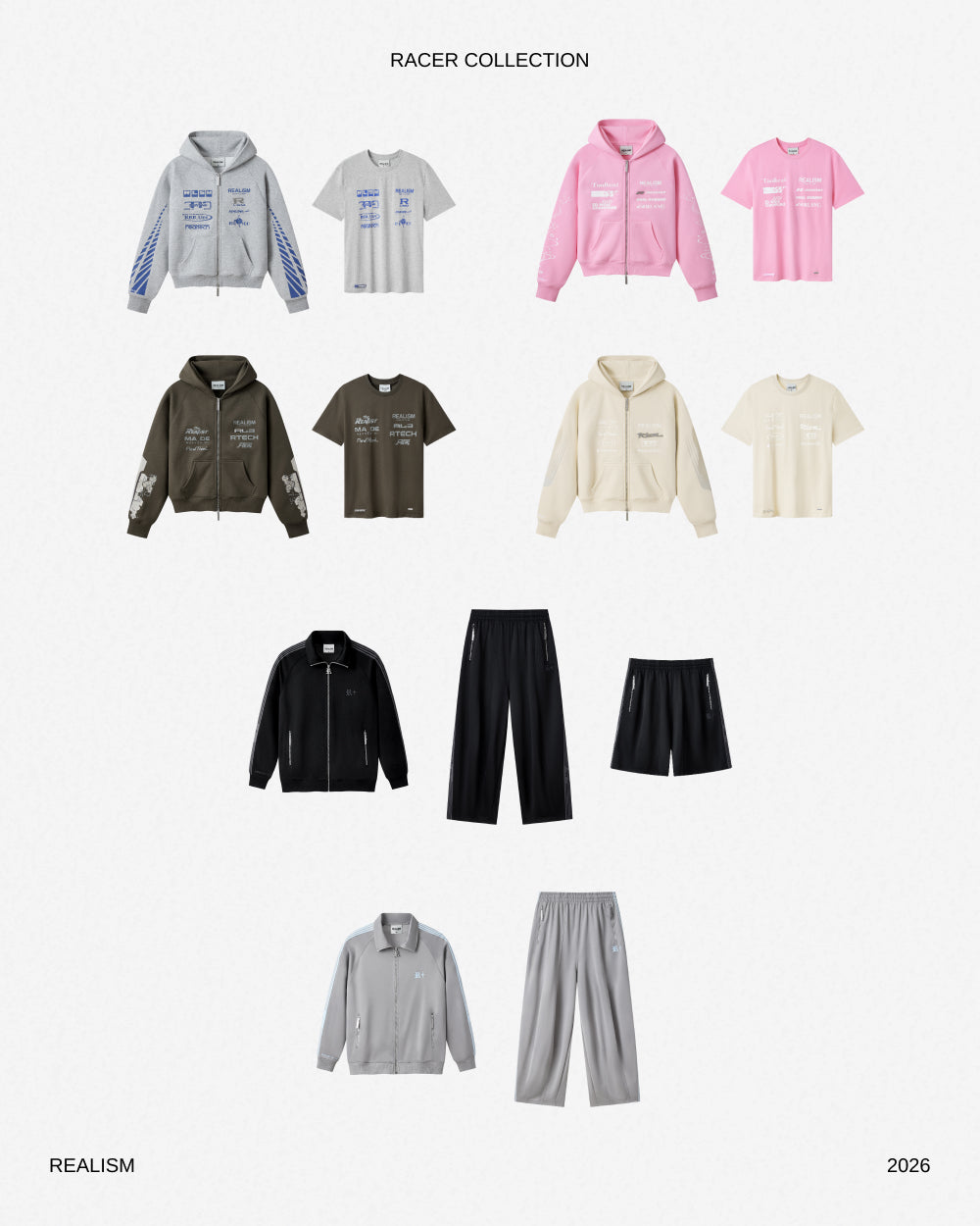 RL3 ZIP HOODIE WALNUT · RL3 TEE WALNUT · R3000 ZIP HOODIE CANDY PINK · R3000 TEE CANDY PINK · R-LINE ZIP HOODIE GREY MARLE · R-LINE TEE GREY MARLE · R-SPEED ZIP HOODIE WASHED TAUPE · R-SPEED TEE WASHED TAUPE · RACER TRACK JACKET BLACK · RACER TRACK JACKET GREY · RACER TRACK PANT BLACK · RACER TRACK PANT GREY · RACER TRACK SHORT BLACK