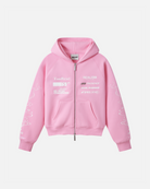 Inspired by motorsport graphics and speed-driven design, the The R3000 Zip Hoodie in Candy Pink is part of our Racer Collection. Featuring bold front, back and sleeve placements, this piece takes cues from racing decals with layered text elements. Finished with custom REALISM metal zip hardware and signature detailing throughout.