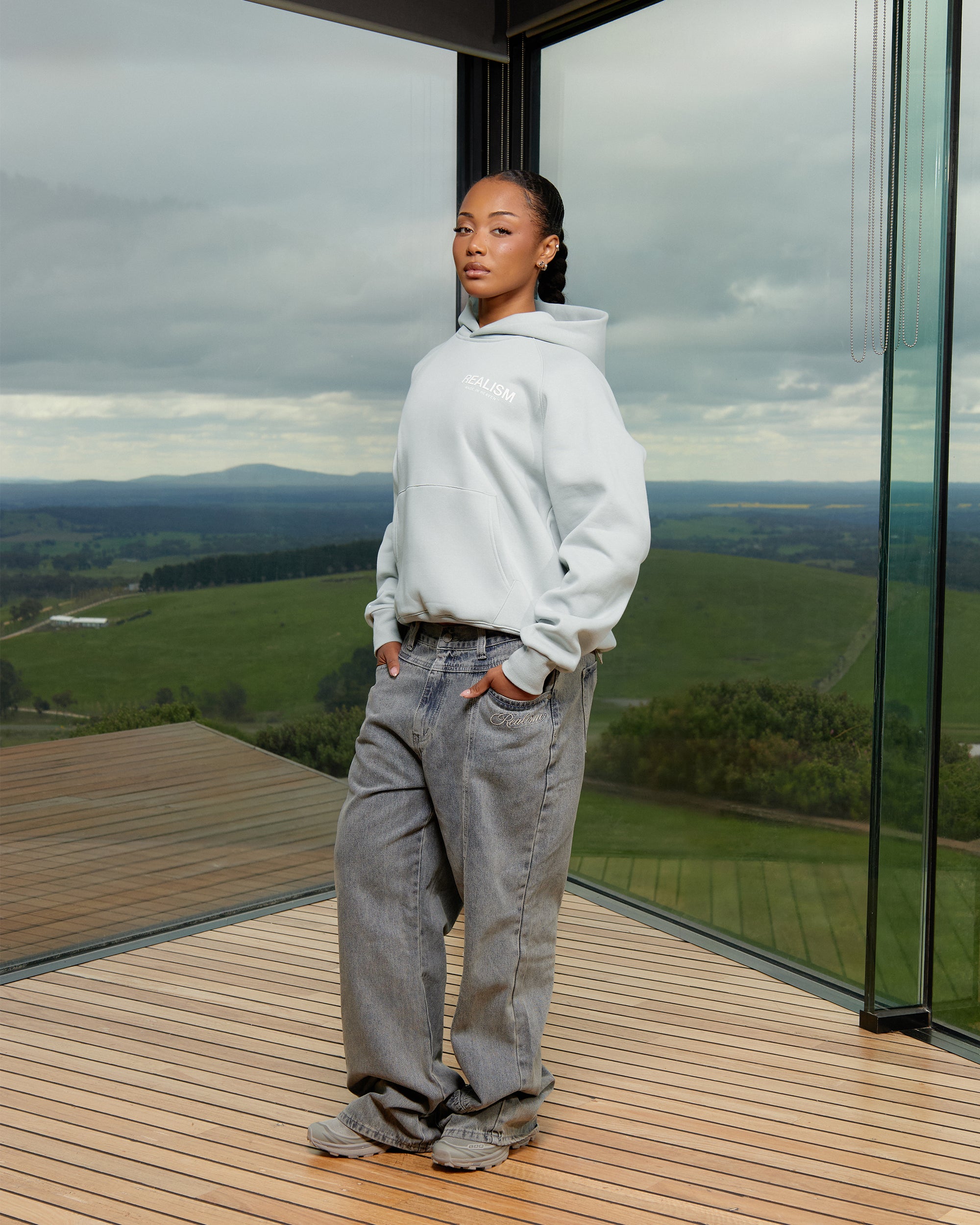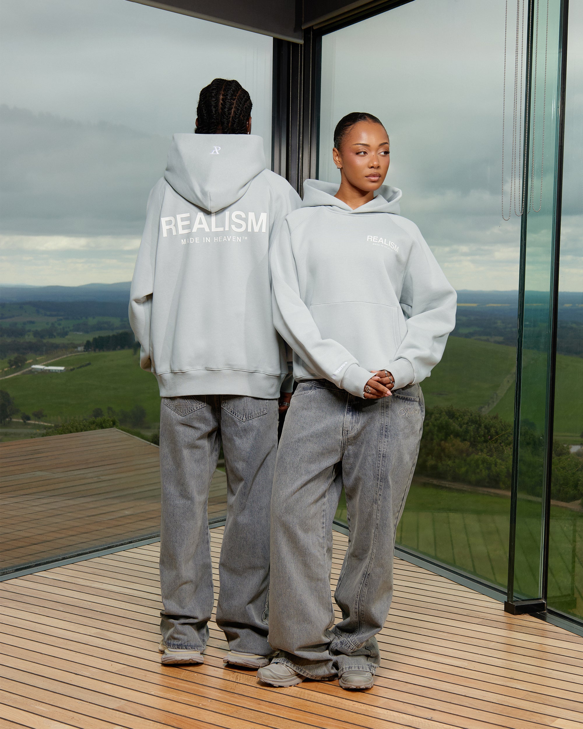 The ultimate hoodie. Premium, comfortable, and designed with purpose. Featuring Realism's signature 350gsm fleece crafted into a raglan, oversized silhouette, this hoodie is accentuated with 3-dimensional silicone applique logos on the front and back. An embroidered "R" logo on the hood and a "Made in Heaven" motif on the right sleeve complete this iconic design.