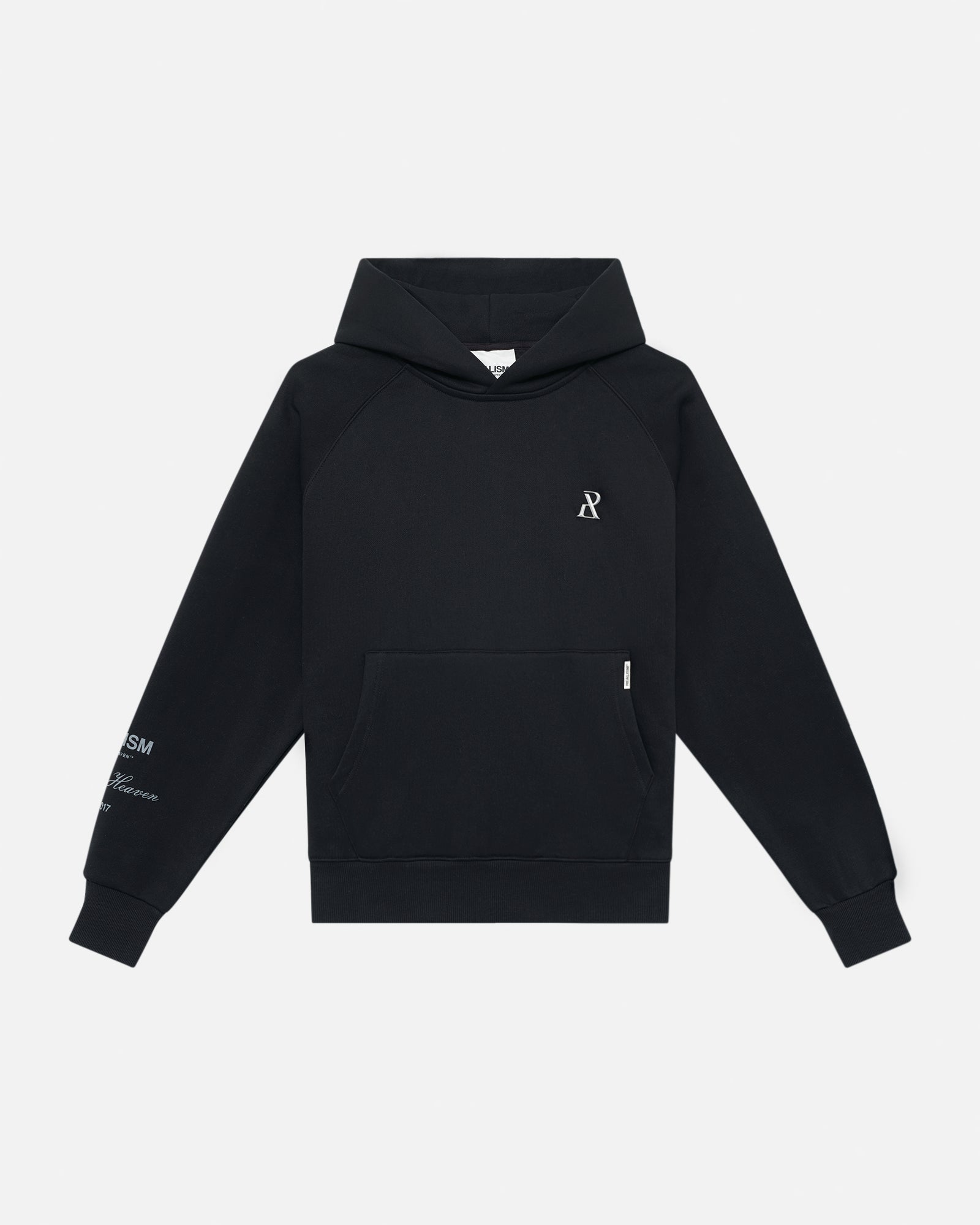 The classic hoodie is refreshed our deluxe touch. Made with our signature comfy fleece in a oversized black guise, this hoodie features metal accents including custom "R" branded zips, chest emblem and tag. An embroidered "R" on the hood, silicon applique logo on the back and sleeve print ties together a design that captures the essence of premium loungewear.