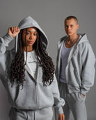 This staple zip hoodie is refreshed with a deluxe signature from the Realism Radiant collection. Made with Realism's signature comfy fleece in a oversized Grey Marle guise, this zip hoodie features metal accents including custom "R" branded zips, chest emblem and tag. An embroidered "R" on the hood, silicon applique logo on the back and sleeve print ties together a design that captures the essence of premium loungewear.