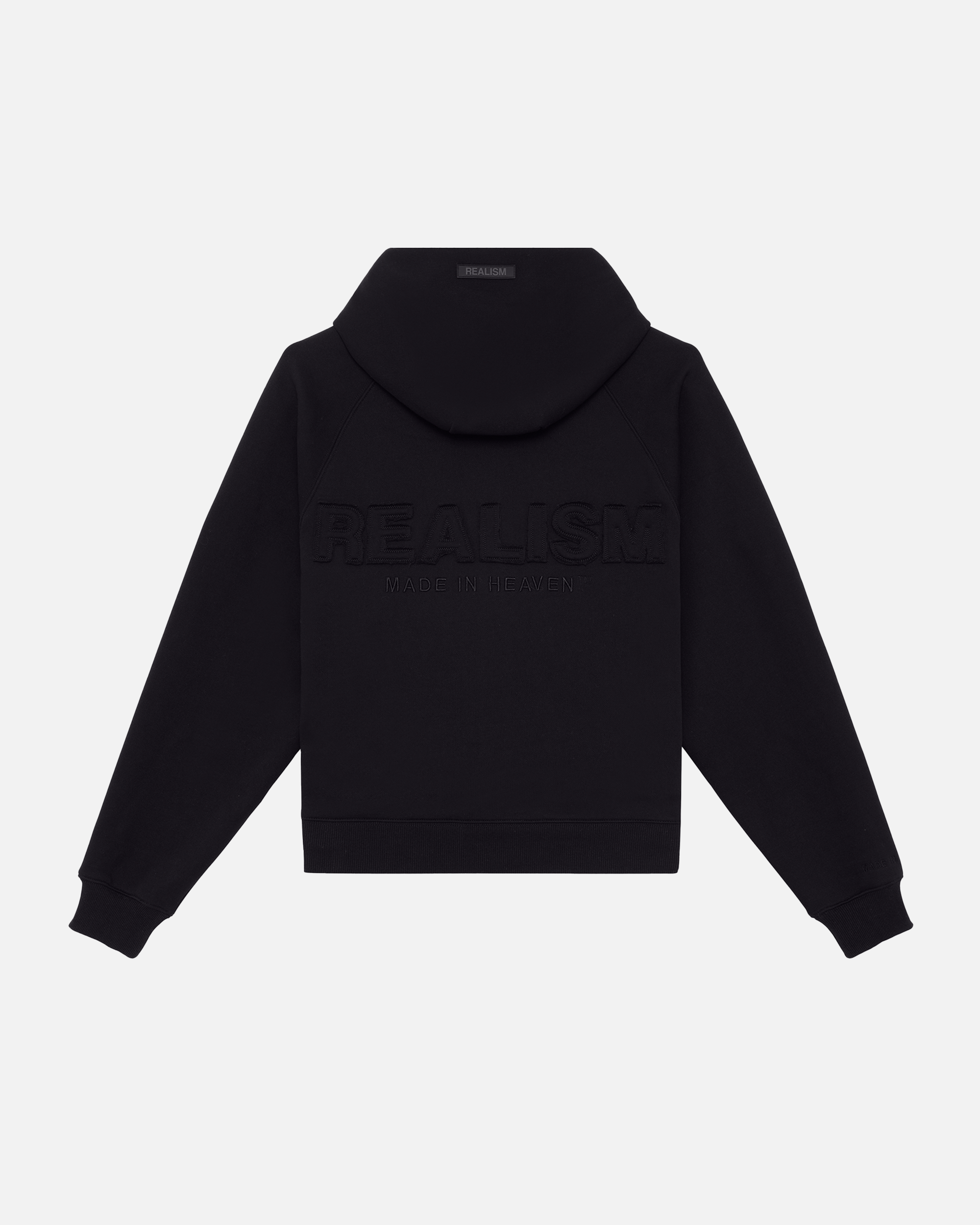 The Legacy Series represents the next evolution of Realism's design identity. Made with Realism's signature comfy fleece in a Black guise. This hoodie features distressed patch work including the “R” on chest and “REALISM” on back. Custom metal accents and silicon applique logo on the hood help bring together the design.
