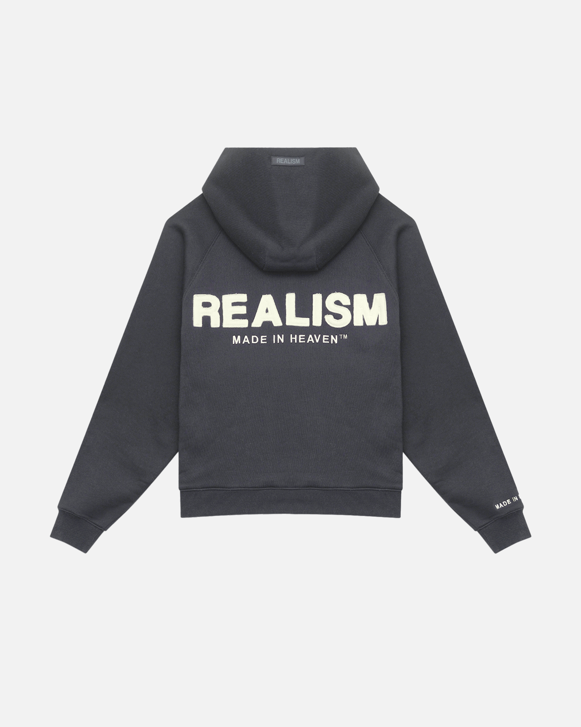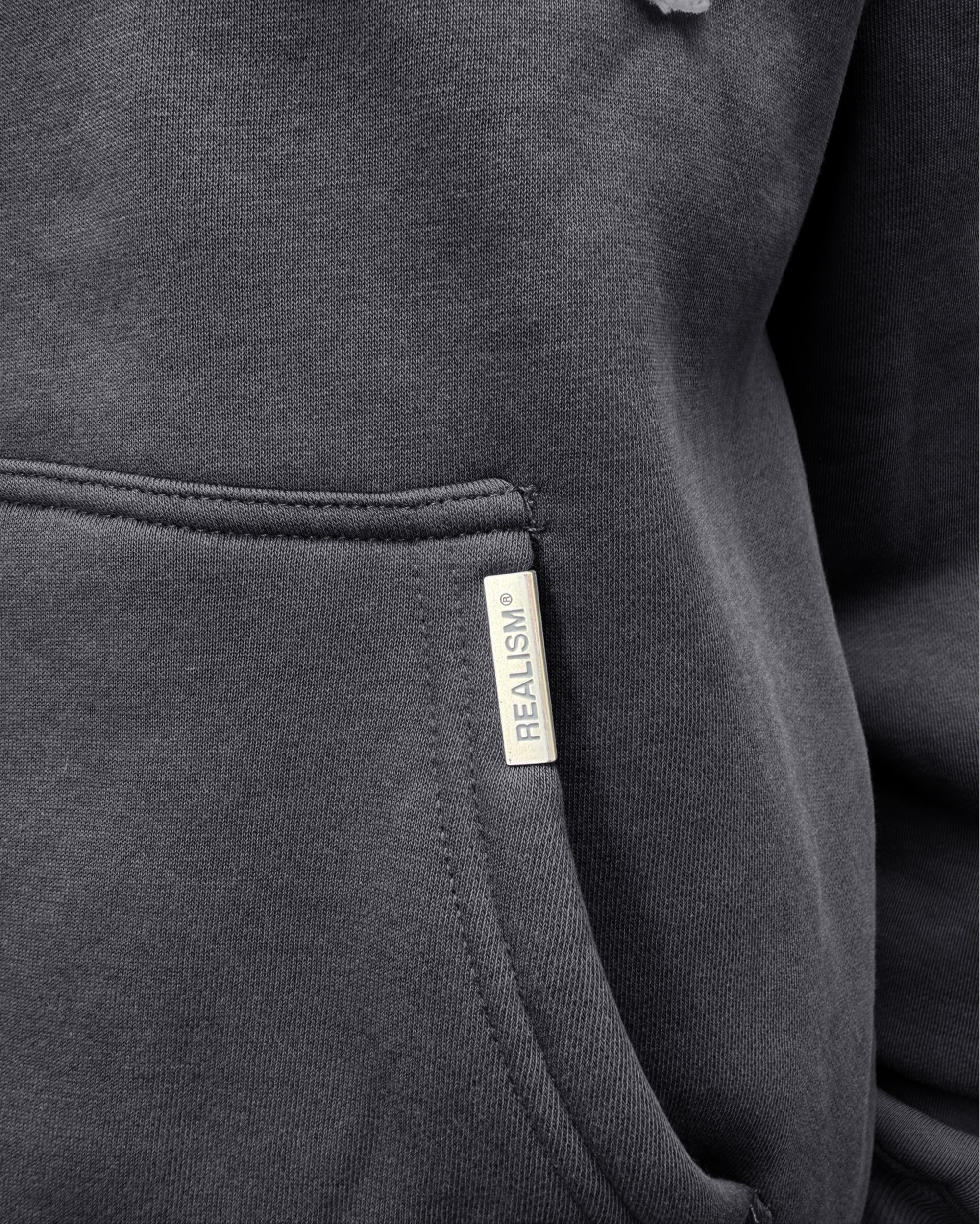 The Legacy Series represents the next evolution of Realism's design identity. Made with Realism's signature comfy fleece in a Black guise. This hoodie features distressed patch work including the “R” on chest and “REALISM” on back. Custom metal accents and silicon applique logo on the hood help bring together the design.