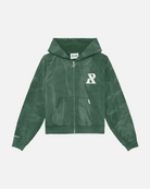 The Legacy Series represents the next evolution of Realism's design identity. Made with an acid washed French Terry in a Washed Moss guise. This zip hoodie features distressed patch work including the “R” on chest and “REALISM” on back. Custom metal accents and a silicon applique logo on the hood help bring together the design.