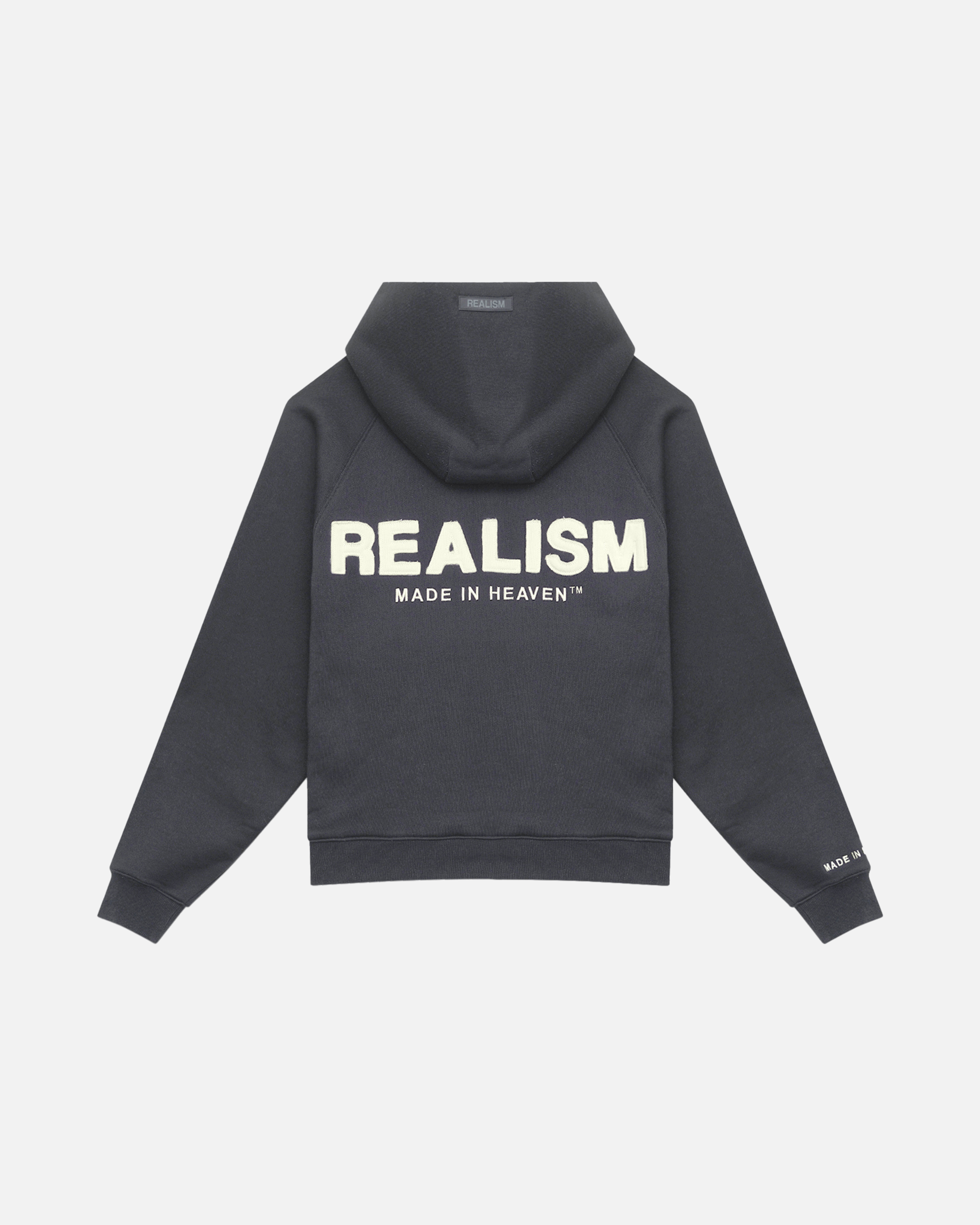 The Legacy Series represents the next evolution of Realism's design identity. Made with Realism's signature comfy fleece in a Black guise. This hoodie features distressed patch work including the “R” on chest and “REALISM” on back. Custom metal accents and silicon applique logo on the hood help bring together the design.